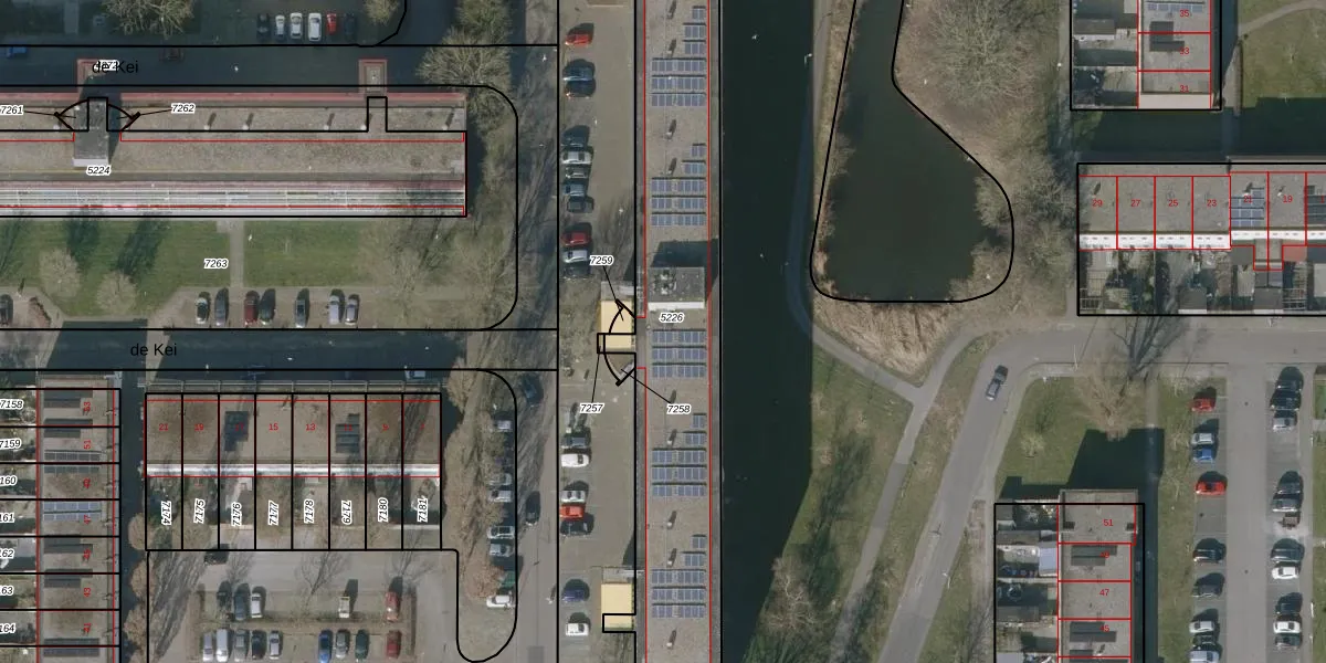 Het perceel waarop de Kei 8 staat heeft een oppervlakte van 1727 m². Dit is een zeer groot perceel. De perceeloppervlakte wordt geregistreerd door het Kadaster. Gedetailleerde informatie over de maten van dit perceel kunt u vinden in het rapport Kadastrale kaart met maatvoering van de Kei 8.