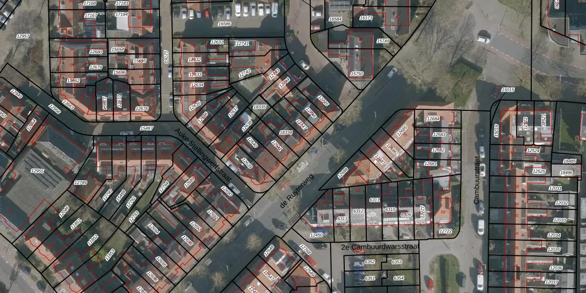 Het perceel waarop de Ruyterweg 21 staat heeft een oppervlakte van 108 m². Dit is een middelgroot perceel. De perceeloppervlakte wordt geregistreerd door het Kadaster. Gedetailleerde informatie over de maten van dit perceel kunt u vinden in het rapport Kadastrale kaart met maatvoering van de Ruyterweg 21.