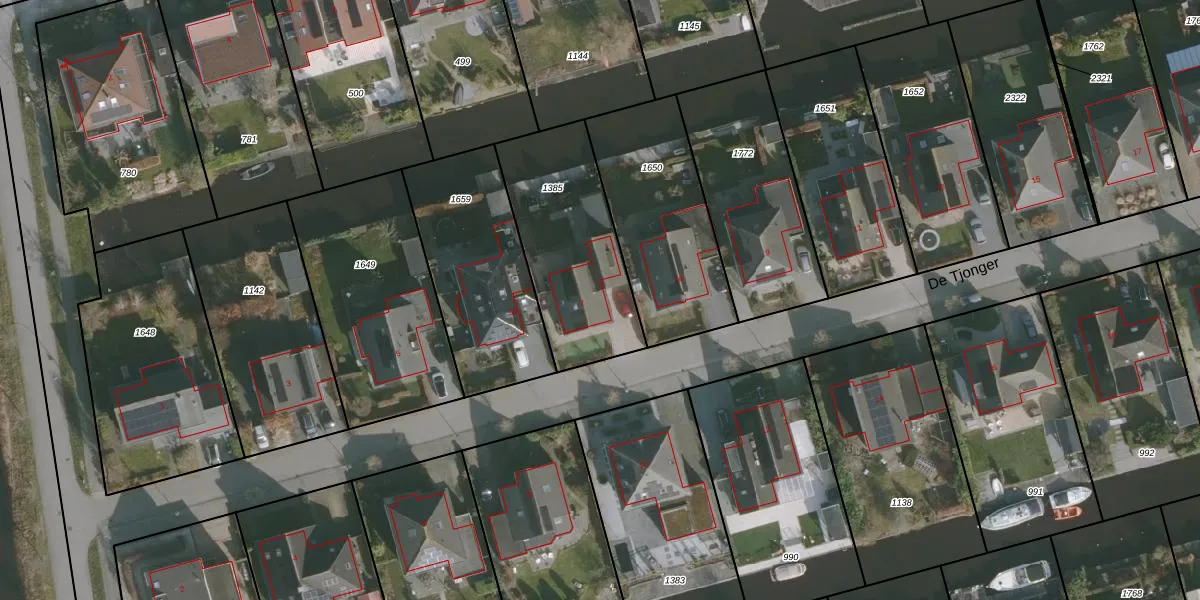 Het perceel waarop De Tjonger 7 staat heeft een oppervlakte van 617 m². Dit is een groot perceel. De perceeloppervlakte wordt geregistreerd door het Kadaster. Gedetailleerde informatie over de maten van dit perceel kunt u vinden in het rapport Kadastrale kaart met maatvoering van De Tjonger 7.