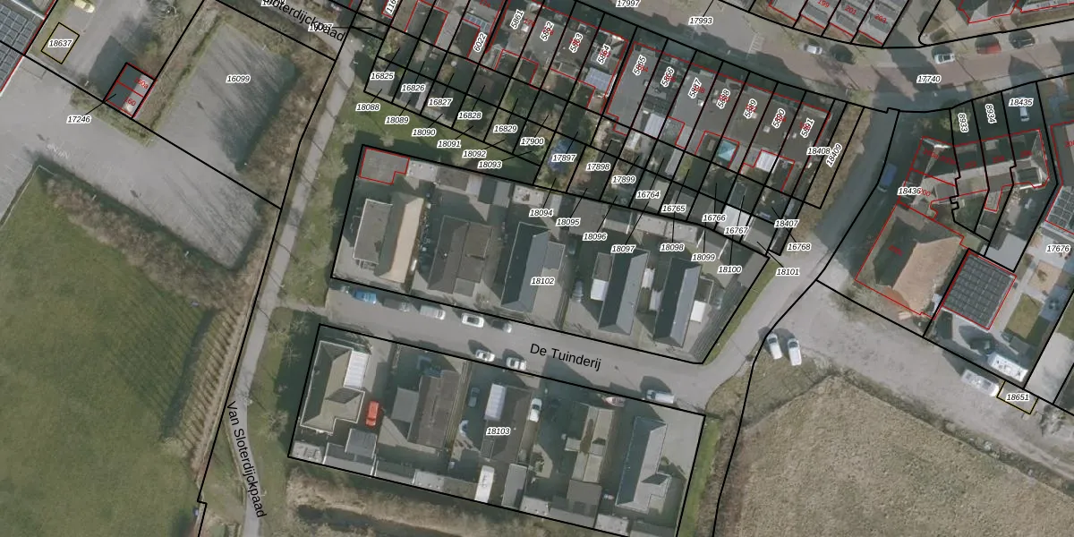 De Tuinderij 6 is gelegen op kadastraal perceel LWD00G18102. Deze kadastrale aanduiding is uniek en wordt gebruikt door het Kadaster om eigendomsrechten en andere zakelijke rechten vast te leggen. Het perceel maakt onderdeel uit van de kadastrale gemeente Leeuwarden.
