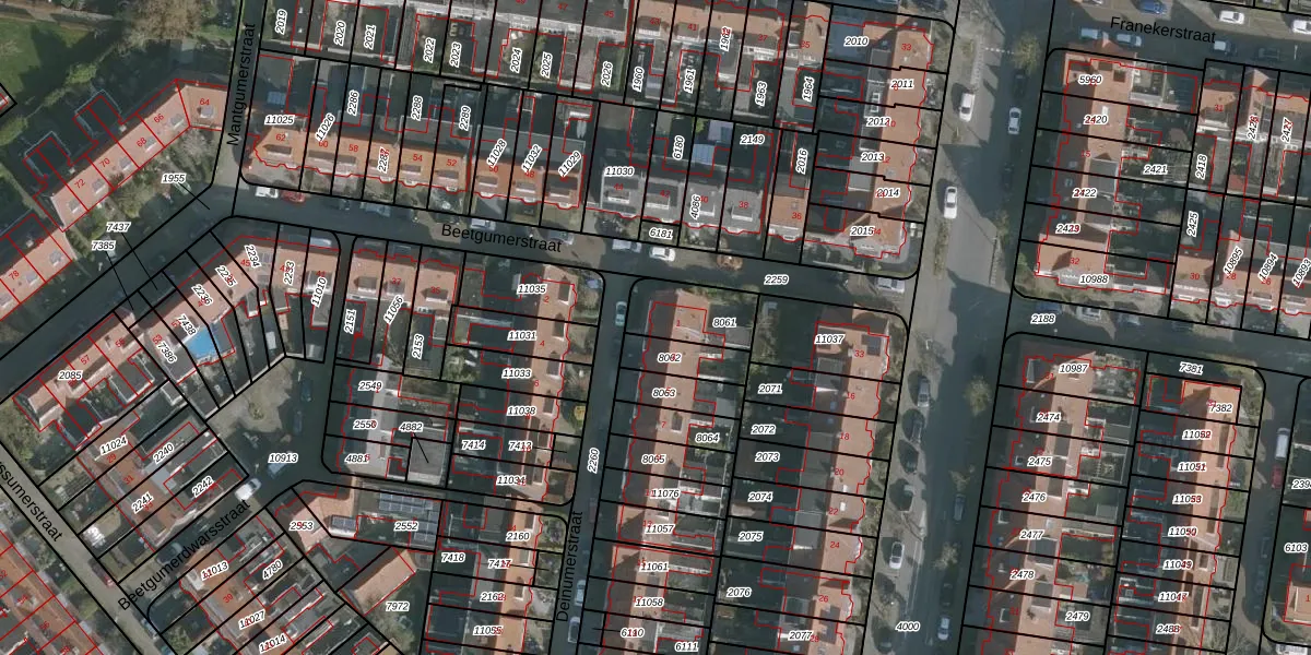 Het perceel waarop Deinumerstraat 1 staat heeft een oppervlakte van 168 m². Dit is een middelgroot perceel. De perceeloppervlakte wordt geregistreerd door het Kadaster. Gedetailleerde informatie over de maten van dit perceel kunt u vinden in het rapport Kadastrale kaart met maatvoering van Deinumerstraat 1.
