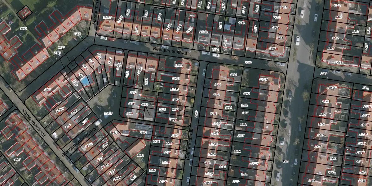 Gebruik de zoekbalk of klik op een perceel voor informatie over de adressen binnen dit perceel.