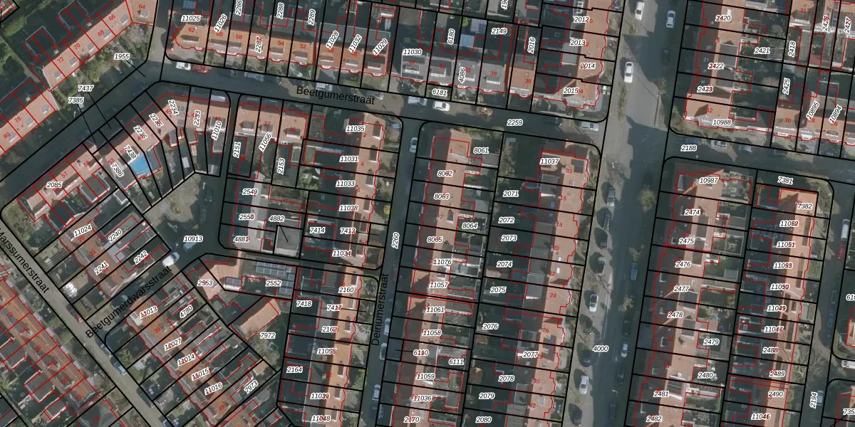 Gebruik de zoekbalk of klik op een perceel voor informatie over de adressen binnen dit perceel.
