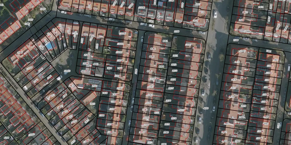 Gebruik de zoekbalk of klik op een perceel voor informatie over de adressen binnen dit perceel.