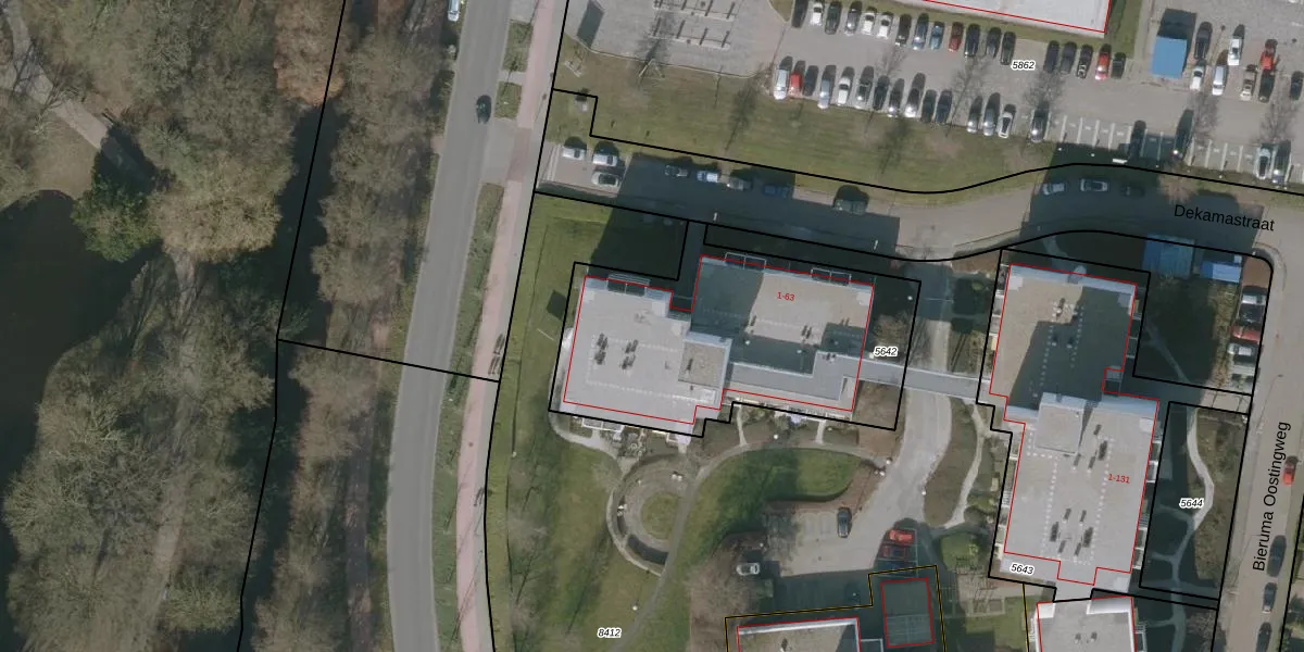 Dekamastraat 5 is gelegen op kadastraal perceel LWD00E5642. Deze kadastrale aanduiding is uniek en wordt gebruikt door het Kadaster om eigendomsrechten en andere zakelijke rechten vast te leggen. Het perceel maakt onderdeel uit van de kadastrale gemeente Leeuwarden.