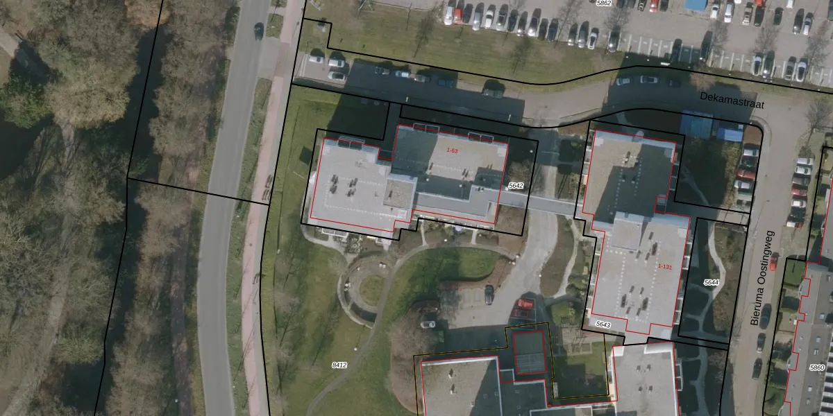 Dekamastraat 55 is gelegen op kadastraal perceel LWD00E5642. Deze kadastrale aanduiding is uniek en wordt gebruikt door het Kadaster om eigendomsrechten en andere zakelijke rechten vast te leggen. Het perceel maakt onderdeel uit van de kadastrale gemeente Leeuwarden.