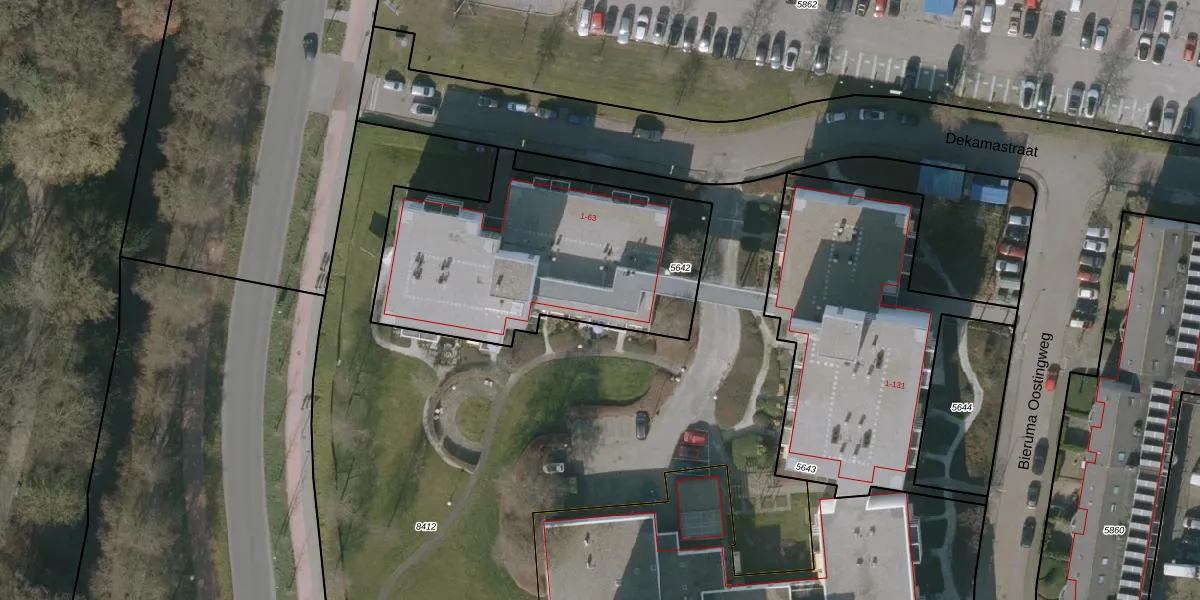 Dekamastraat 61 is gelegen op kadastraal perceel LWD00E5642. Deze kadastrale aanduiding is uniek en wordt gebruikt door het Kadaster om eigendomsrechten en andere zakelijke rechten vast te leggen. Het perceel maakt onderdeel uit van de kadastrale gemeente Leeuwarden.