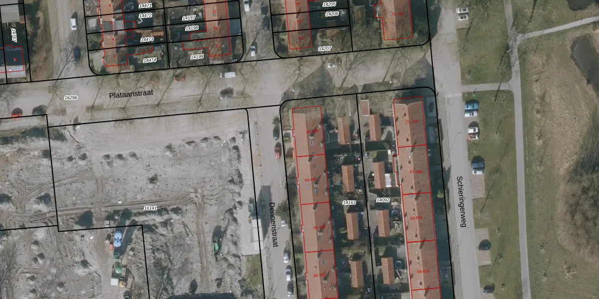 Het perceel waarop Dennenstraat 48 staat heeft een oppervlakte van 2245 m². Dit is een zeer groot perceel. De perceeloppervlakte wordt geregistreerd door het Kadaster. Gedetailleerde informatie over de maten van dit perceel kunt u vinden in het rapport Kadastrale kaart met maatvoering van Dennenstraat 48.
