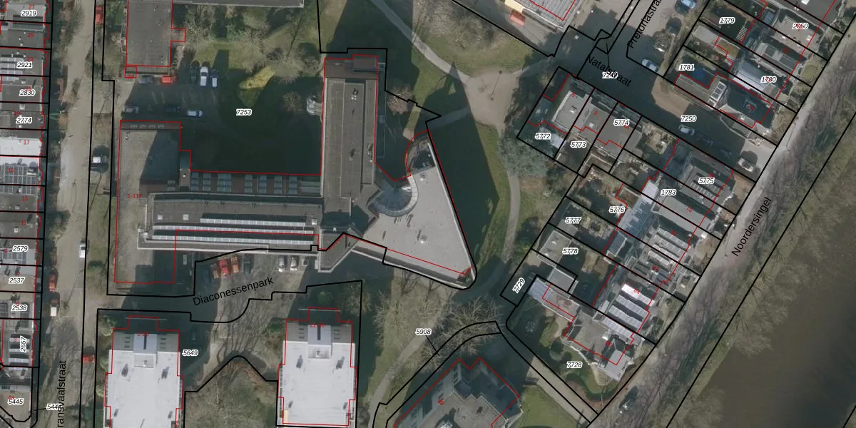 Het perceel waarop Diaconessenpark 75 staat heeft een oppervlakte van 5521 m². Dit is een zeer groot perceel. De perceeloppervlakte wordt geregistreerd door het Kadaster. Gedetailleerde informatie over de maten van dit perceel kunt u vinden in het rapport Kadastrale kaart met maatvoering van Diaconessenpark 75.