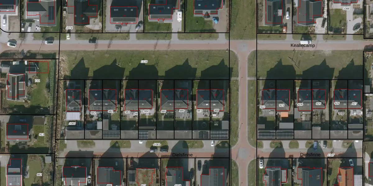 Gebruik de zoekbalk of klik op een perceel voor informatie over de adressen binnen dit perceel.
