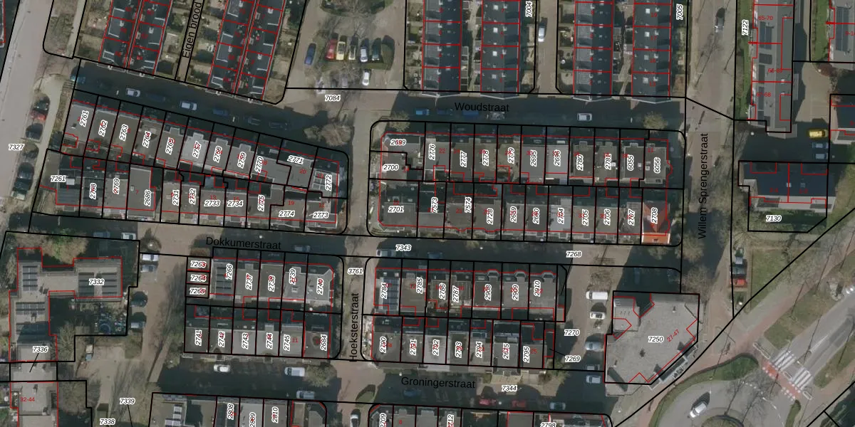 Gebruik de zoekbalk of klik op een perceel voor informatie over de adressen binnen dit perceel.