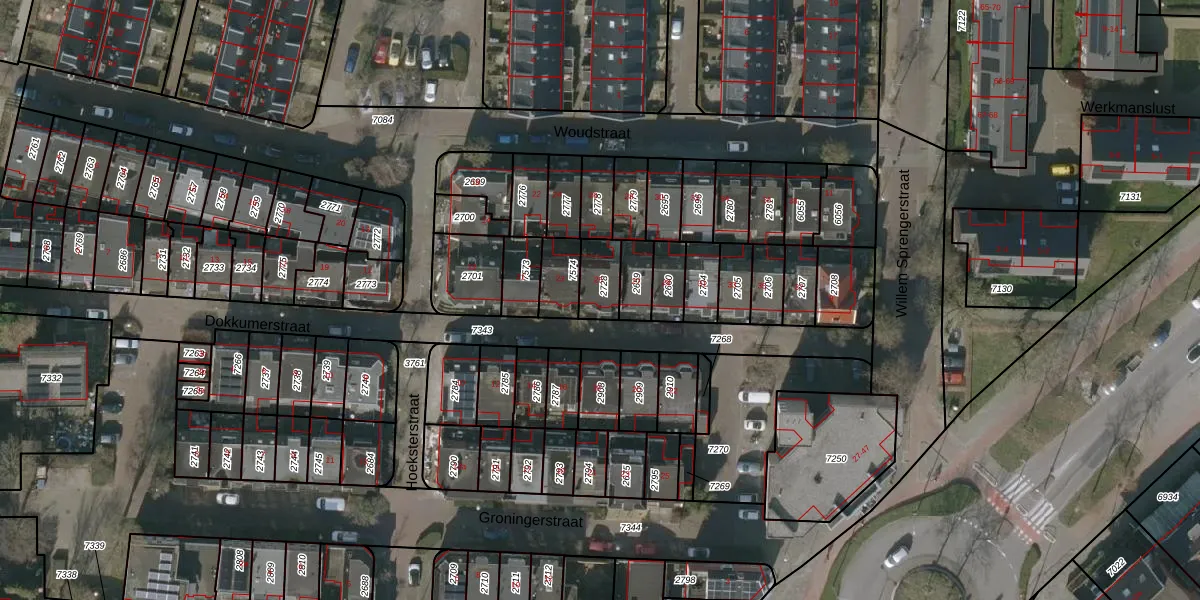 Gebruik de zoekbalk of klik op een perceel voor informatie over de adressen binnen dit perceel.
