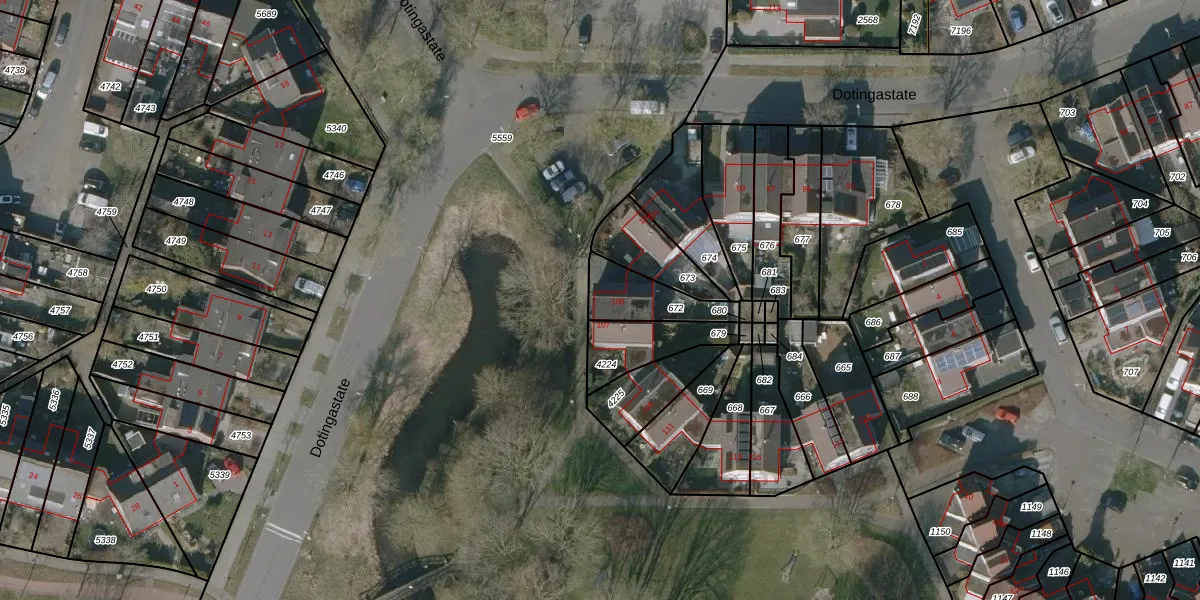 Dotingastate 105 is gelegen op kadastraal perceel LWD00K672. Deze kadastrale aanduiding is uniek en wordt gebruikt door het Kadaster om eigendomsrechten en andere zakelijke rechten vast te leggen. Het perceel maakt onderdeel uit van de kadastrale gemeente Leeuwarden.