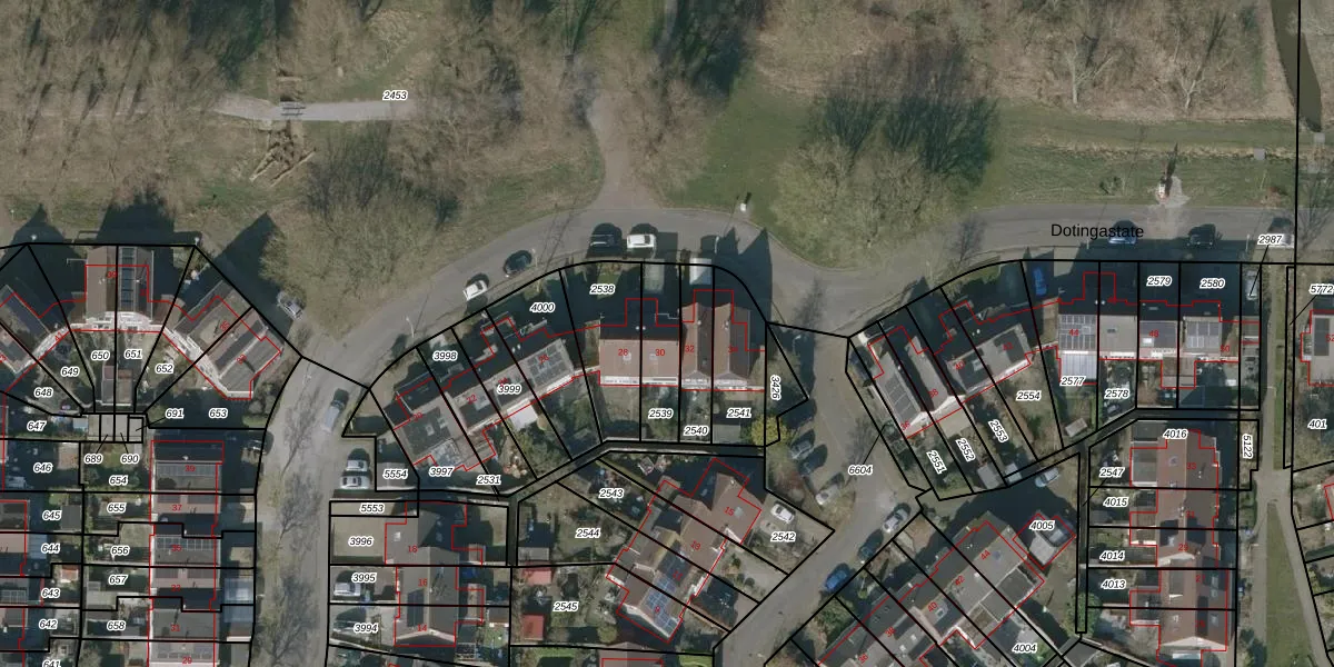 Dotingastate 30 is gelegen op kadastraal perceel LWD00K2539. Deze kadastrale aanduiding is uniek en wordt gebruikt door het Kadaster om eigendomsrechten en andere zakelijke rechten vast te leggen. Het perceel maakt onderdeel uit van de kadastrale gemeente Leeuwarden.