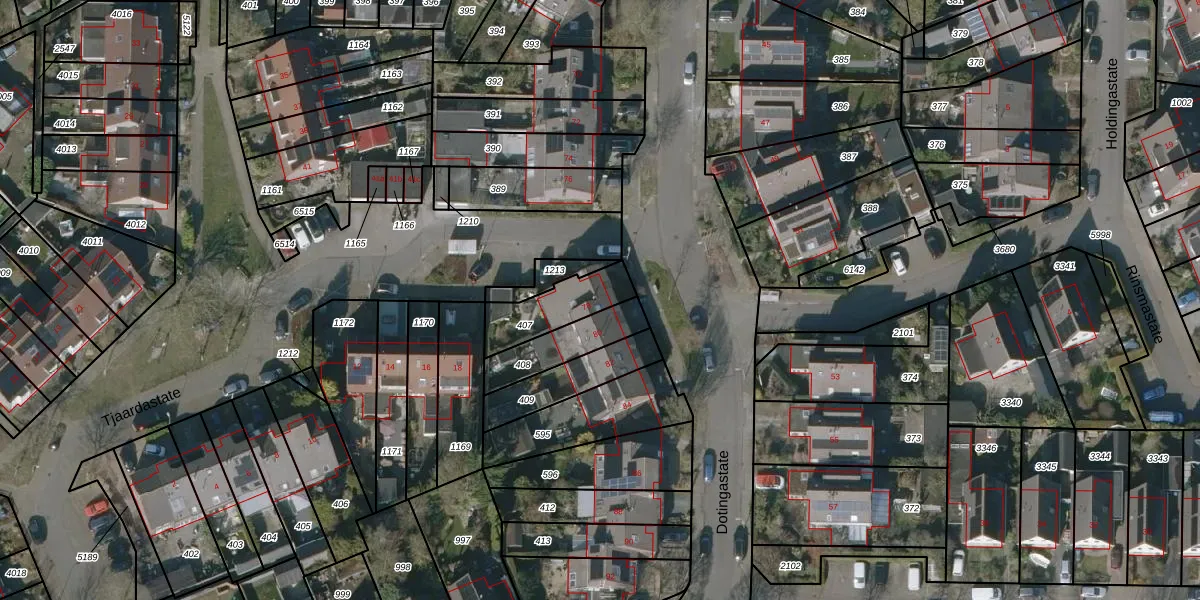 Gebruik de zoekbalk of klik op een perceel voor informatie over de adressen binnen dit perceel.