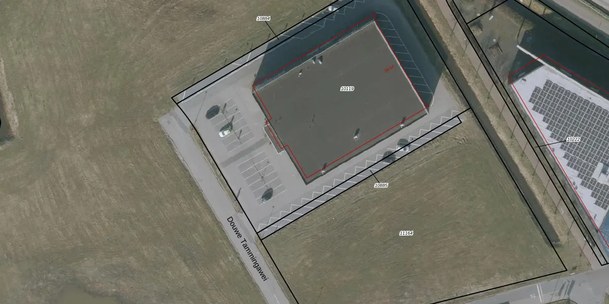 Het perceel waarop Douwe Tammingawei 32 staat heeft een oppervlakte van 4085 m². Dit is een zeer groot perceel. De perceeloppervlakte wordt geregistreerd door het Kadaster. Gedetailleerde informatie over de maten van dit perceel kunt u vinden in het rapport Kadastrale kaart met maatvoering van Douwe Tammingawei 32.