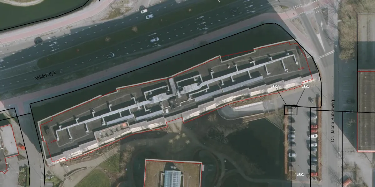 Het perceel waarop het adres ligt is HZM00-F-2207. De afkorting 'HZM00' staat voor kadastrale gemeente Huizum. Het perceel is met 1,9 ha relatief groot. Het gemiddelde ligt in de kadastrale gemeente Huizum op 1504,31 m². De grootste perceeloppervlakte in de kadastrale gemeente is 75,1 ha. De kleinste oppervlakte bedraagt 0 m². Er zijn 255 adressen aanwezig op het perceel. In de Basisregistratie Kadaster (BRK) werden de grenzen van het perceel geregistreerd op 11-11-2016.