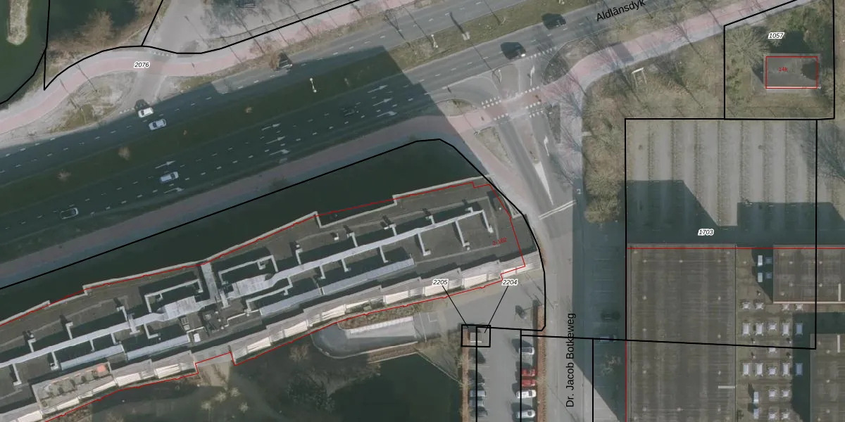 Het perceel waarop het adres ligt is HZM00-F-2207. De afkorting 'HZM00' staat voor kadastrale gemeente Huizum. Het perceel is met 1,9 ha relatief groot. Het gemiddelde ligt in de kadastrale gemeente Huizum op 1504,31 m². De grootste perceeloppervlakte in de kadastrale gemeente is 75,1 ha. De kleinste oppervlakte bedraagt 0 m². Op het perceel liggen in totaal 255 adressen. De huidige grenzen van het perceel zijn digitaal in de Basisregistratie Kadaster (BRK) geregistreerd op 11-11-2016.