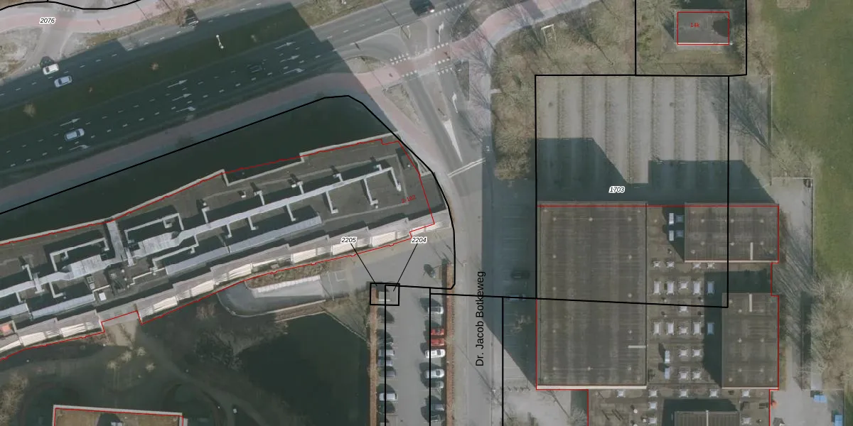 Dr. Jacob Botkeweg 56 is gelegen op kadastraal perceel HZM00F2207. Deze kadastrale aanduiding is uniek en wordt gebruikt door het Kadaster om eigendomsrechten en andere zakelijke rechten vast te leggen. Het perceel maakt onderdeel uit van de kadastrale gemeente Huizum.
