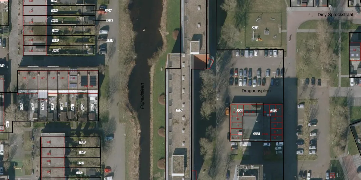 Het perceel waarop Dragoonsplein 203 staat heeft een oppervlakte van 1637 m². Dit is een zeer groot perceel. De perceeloppervlakte wordt geregistreerd door het Kadaster. Gedetailleerde informatie over de maten van dit perceel kunt u vinden in het rapport Kadastrale kaart met maatvoering van Dragoonsplein 203.