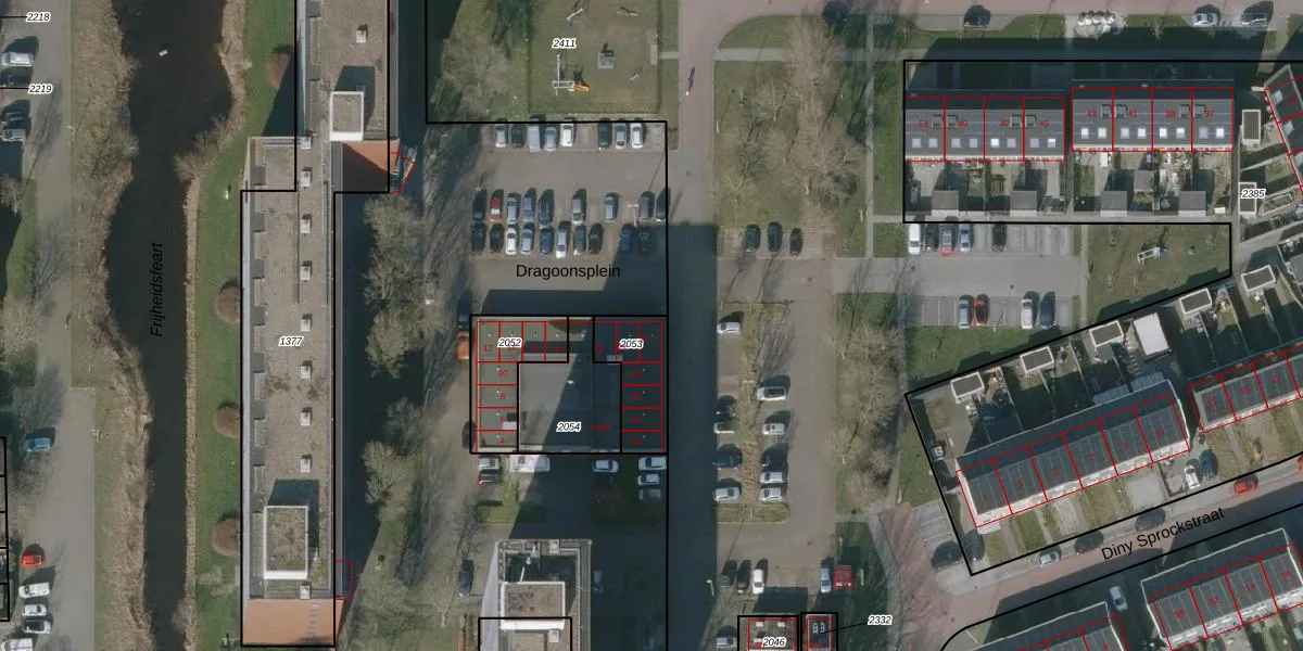 Dragoonsplein 24 is gelegen op kadastraal perceel LWD00H2053. Deze kadastrale aanduiding is uniek en wordt gebruikt door het Kadaster om eigendomsrechten en andere zakelijke rechten vast te leggen. Het perceel maakt onderdeel uit van de kadastrale gemeente Leeuwarden.