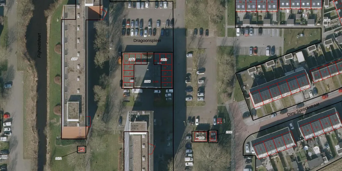 Dragoonsplein 32 is gelegen op kadastraal perceel LWD00H2053. Deze kadastrale aanduiding is uniek en wordt gebruikt door het Kadaster om eigendomsrechten en andere zakelijke rechten vast te leggen. Het perceel maakt onderdeel uit van de kadastrale gemeente Leeuwarden.