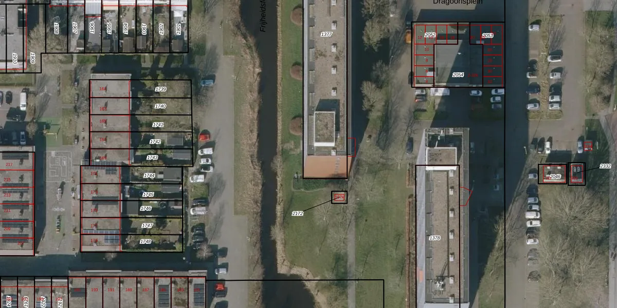 Het perceel waarop Dragoonsplein 327 staat heeft een oppervlakte van 1637 m². Dit is een zeer groot perceel. De perceeloppervlakte wordt geregistreerd door het Kadaster. Gedetailleerde informatie over de maten van dit perceel kunt u vinden in het rapport Kadastrale kaart met maatvoering van Dragoonsplein 327.