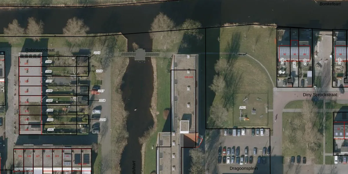 Het perceel waarop Dragoonsplein 343 staat heeft een oppervlakte van 1637 m². Dit is een zeer groot perceel. De perceeloppervlakte wordt geregistreerd door het Kadaster. Gedetailleerde informatie over de maten van dit perceel kunt u vinden in het rapport Kadastrale kaart met maatvoering van Dragoonsplein 343.
