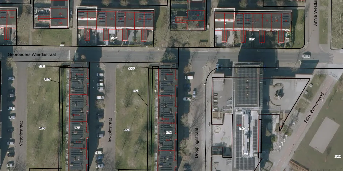 Het perceel waarop Droppingsstraat 15 staat heeft een oppervlakte van 985 m². Dit is een groot perceel. De perceeloppervlakte wordt geregistreerd door het Kadaster. Gedetailleerde informatie over de maten van dit perceel kunt u vinden in het rapport Kadastrale kaart met maatvoering van Droppingsstraat 15.