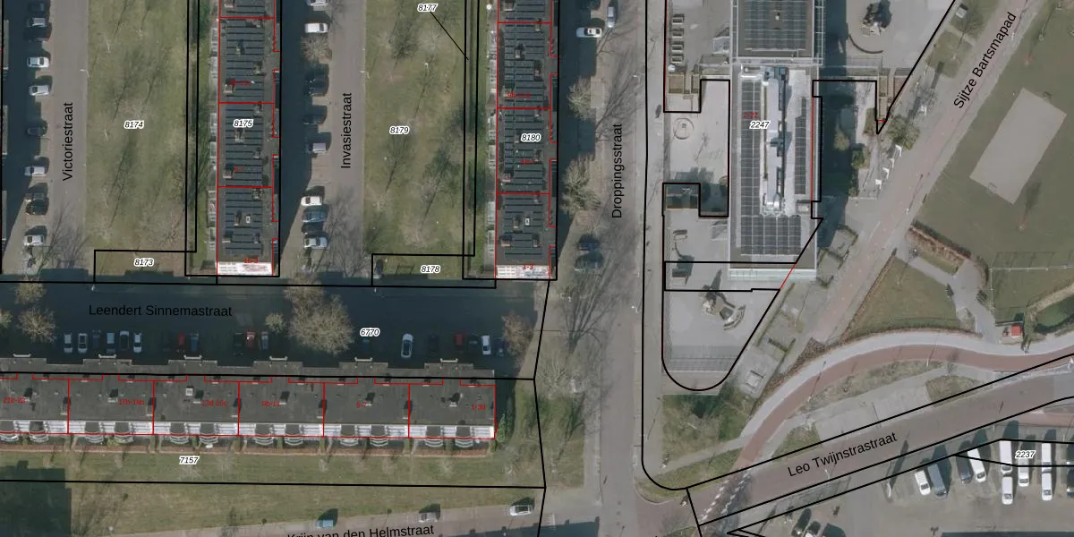 Het perceel waarop Droppingsstraat 3-c staat heeft een oppervlakte van 985 m². Dit is een groot perceel. De perceeloppervlakte wordt geregistreerd door het Kadaster. Gedetailleerde informatie over de maten van dit perceel kunt u vinden in het rapport Kadastrale kaart met maatvoering van Droppingsstraat 3-c.