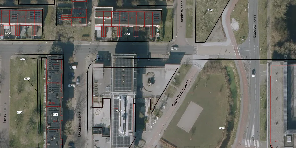 Het adres ligt op het perceel LWD00-H-2247, dat zich in de kadastrale gemeente Leeuwarden bevindt. Het perceel is met 2141 m² relatief groot. Het gemiddelde ligt in de kadastrale gemeente Leeuwarden op 1524,67 m². Het kleinste perceel in de kadastrale gemeente is 0 m² groot. De grootste perceeloppervlakte is 1,54 km². Op het perceel zijn 9 adressen aanwezig. De huidige grenzen van het perceel zijn digitaal in de Basisregistratie Kadaster (BRK) geregistreerd op 16-03-2011.