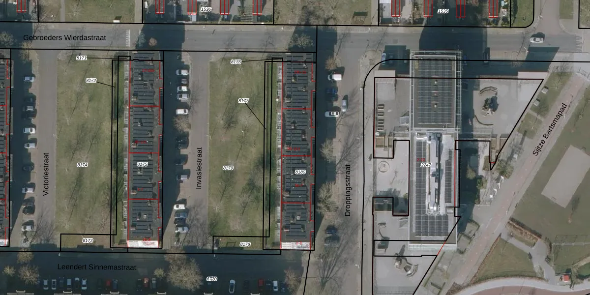 Het perceel waarop Droppingsstraat 9-d staat heeft een oppervlakte van 985 m². Dit is een groot perceel. De perceeloppervlakte wordt geregistreerd door het Kadaster. Gedetailleerde informatie over de maten van dit perceel kunt u vinden in het rapport Kadastrale kaart met maatvoering van Droppingsstraat 9-d.