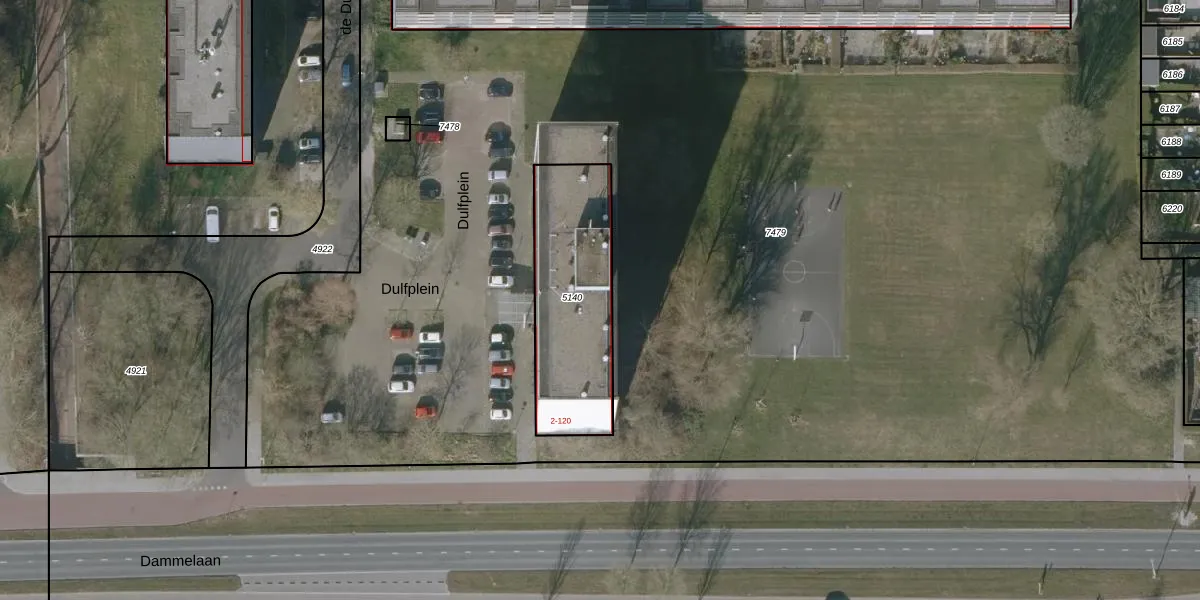 Het perceel waarop Dulfplein 106 staat heeft een oppervlakte van 588 m². Dit is een groot perceel. De perceeloppervlakte wordt geregistreerd door het Kadaster. Gedetailleerde informatie over de maten van dit perceel kunt u vinden in het rapport Kadastrale kaart met maatvoering van Dulfplein 106.