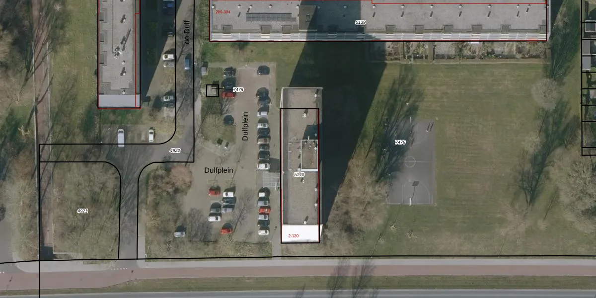 Het perceel waarop Dulfplein 58 staat heeft een oppervlakte van 588 m². Dit is een groot perceel. De perceeloppervlakte wordt geregistreerd door het Kadaster. Gedetailleerde informatie over de maten van dit perceel kunt u vinden in het rapport Kadastrale kaart met maatvoering van Dulfplein 58.