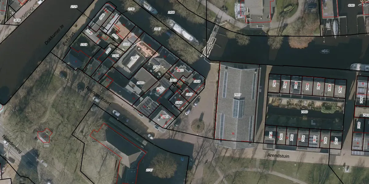Gebruik de zoekbalk of klik op een perceel voor informatie over de adressen binnen dit perceel.