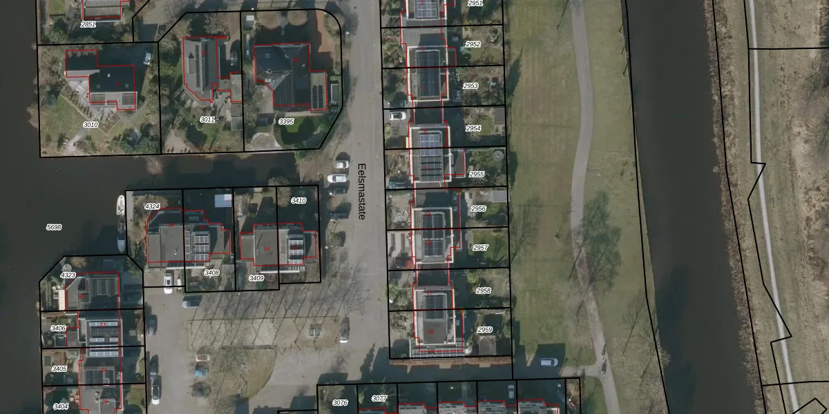 Eelsmastate 13 is gelegen op kadastraal perceel LWD00K2956. Deze kadastrale aanduiding is uniek en wordt gebruikt door het Kadaster om eigendomsrechten en andere zakelijke rechten vast te leggen. Het perceel maakt onderdeel uit van de kadastrale gemeente Leeuwarden.