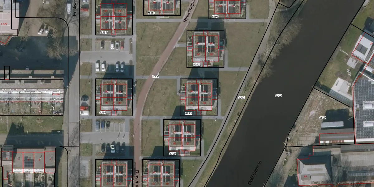 Het adres is gelegen op perceel 8291 in de sectie E en de kadastrale gemeente Leeuwarden. De kadastrale aanduiding is aldus LWD00-E-8291. Het perceel is 393 m² groot. Dat is kleiner dan de gemiddelde perceeloppervlakte in Leeuwarden, dat op 1524,45 m² ligt. Het grootste perceel in de kadastrale gemeente is 1,54 km². Het kleinste perceel heeft een oppervlakte van 0 m². Op het perceel liggen in totaal 4 adressen. De huidige grenzen van het perceel zijn digitaal in de Basisregistratie Kadaster (BRK) geregistreerd op 18-04-2024.