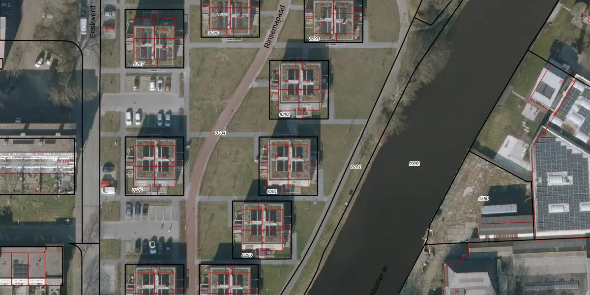 Het adres is gelegen op perceel 8291 in de sectie E en de kadastrale gemeente Leeuwarden. De kadastrale aanduiding is aldus LWD00-E-8291. Het perceel is 393 m² groot. Dat is kleiner dan de gemiddelde perceeloppervlakte in Leeuwarden, dat op 1524,45 m² ligt. Het grootste perceel in de kadastrale gemeente is 1,54 km². Het kleinste perceel heeft een oppervlakte van 0 m². Op het perceel liggen in totaal 4 adressen. De laatste wijziging in het de Basisregistratie Kadaster (BRK) was op 18-04-2024.