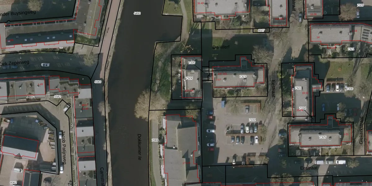 Het adres is gelegen op perceel 7324 in de sectie F en de kadastrale gemeente Leeuwarden. De kadastrale aanduiding is aldus LWD00-F-7324. Het perceel is kleiner dan gemiddeld in Leeuwarden. Het perceel is 396 m² groot, terwijl het gemiddelde ligt op 1524,67 m². De grootste perceeloppervlakte in de kadastrale gemeente is 1,54 km². De kleinste oppervlakte bedraagt 0 m². Er zijn 10 adressen aanwezig op het perceel. In de Basisregistratie Kadaster (BRK) werden de grenzen van het perceel geregistreerd op 15-01-1998.