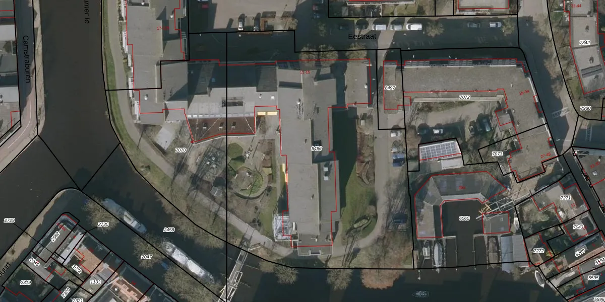 Het perceel waarop Eestraat 15-a-349 staat heeft een oppervlakte van 4145 m². Dit is een zeer groot perceel. De perceeloppervlakte wordt geregistreerd door het Kadaster. Gedetailleerde informatie over de maten van dit perceel kunt u vinden in het rapport Kadastrale kaart met maatvoering van Eestraat 15-a-349.