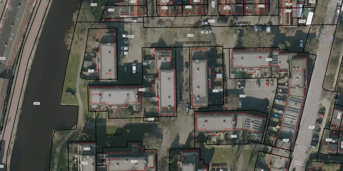 Het adres is gelegen op perceel 8326 in de sectie F en de kadastrale gemeente Leeuwarden. De kadastrale aanduiding is aldus LWD00-F-8326. Het perceel is 1376 m² groot. Dat is kleiner dan de gemiddelde perceeloppervlakte in Leeuwarden, dat op 1524,67 m² ligt. De grootste perceeloppervlakte in de kadastrale gemeente is 1,54 km². De kleinste oppervlakte bedraagt 0 m². Op het perceel zijn 16 adressen aanwezig. De huidige grenzen van het perceel zijn digitaal in de Basisregistratie Kadaster (BRK) geregistreerd op 26-09-2017.