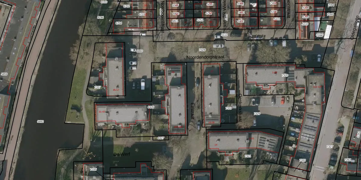 Het adres is gelegen op perceel 8326 in de sectie F en de kadastrale gemeente Leeuwarden. De kadastrale aanduiding is aldus LWD00-F-8326. Het perceel is kleiner dan gemiddeld in Leeuwarden. Het perceel is 1376 m² groot, terwijl het gemiddelde ligt op 1524,67 m². De grootste perceeloppervlakte in de kadastrale gemeente is 1,54 km². De kleinste oppervlakte bedraagt 0 m². Op het perceel zijn 16 adressen aanwezig. De huidige grenzen van het perceel zijn digitaal in de Basisregistratie Kadaster (BRK) geregistreerd op 26-09-2017.