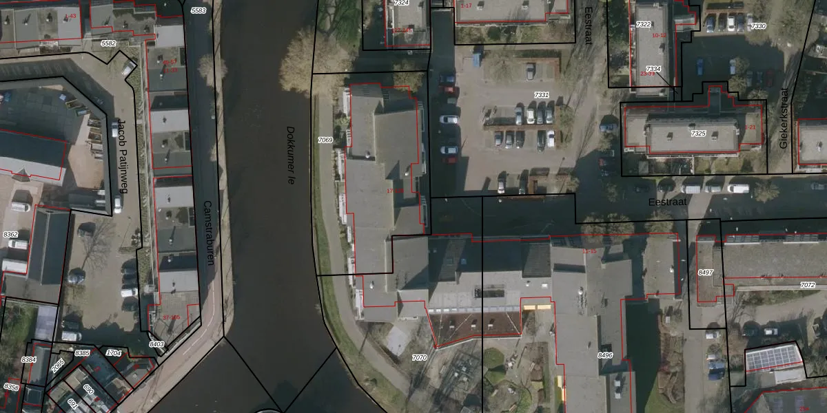 Het adres is gelegen op perceel 7069 in de sectie F en de kadastrale gemeente Leeuwarden. De kadastrale aanduiding is aldus LWD00-F-7069. Het perceel is kleiner dan gemiddeld in Leeuwarden. Het perceel is 1310 m² groot, terwijl het gemiddelde ligt op 1524,67 m². Het kleinste perceel in de kadastrale gemeente is 0 m² groot. De grootste perceeloppervlakte is 1,54 km². Er zijn 55 adressen aanwezig op het perceel. De huidige grenzen van het perceel zijn digitaal in de Basisregistratie Kadaster (BRK) geregistreerd op 15-01-1998.