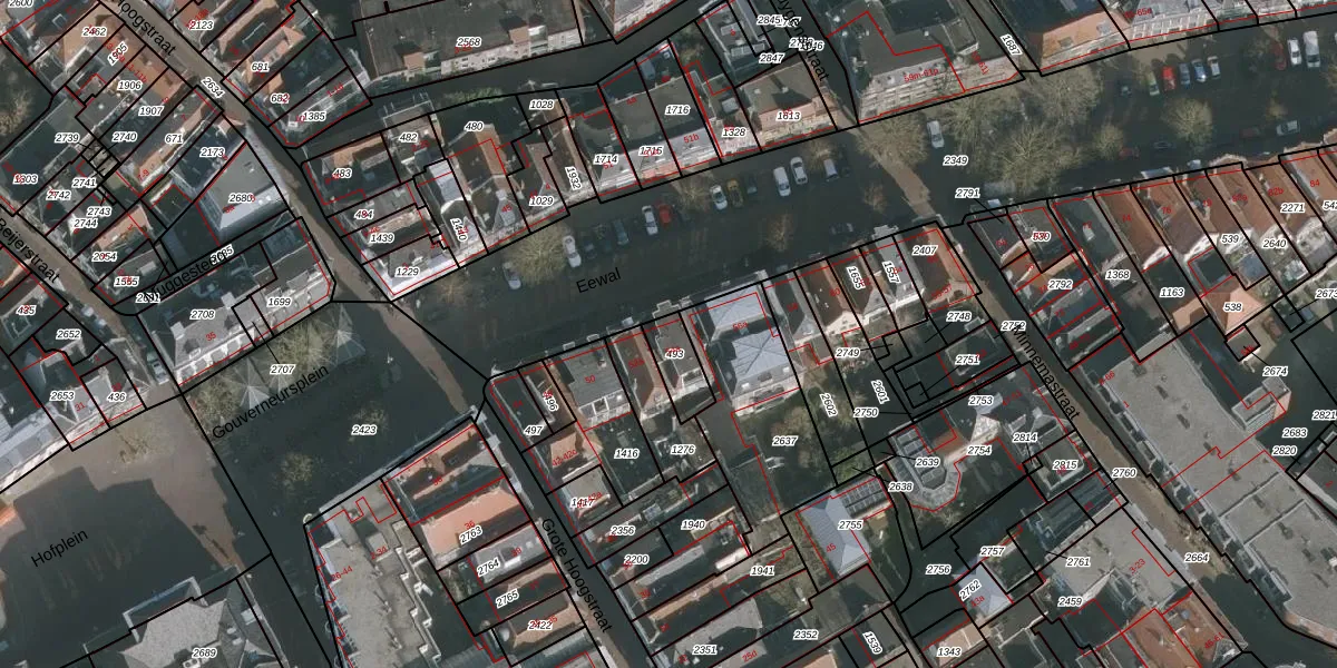 Het perceel waarop Eewal 54 staat heeft een oppervlakte van 90 m². Dit is een klein perceel. De perceeloppervlakte wordt geregistreerd door het Kadaster. Gedetailleerde informatie over de maten van dit perceel kunt u vinden in het rapport Kadastrale kaart met maatvoering van Eewal 54.