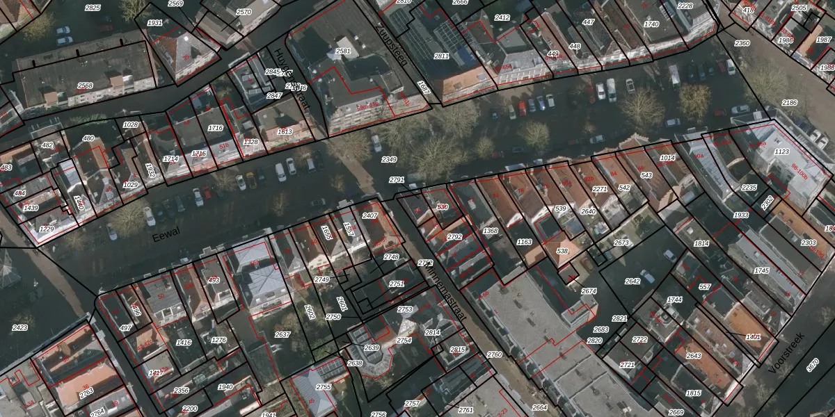 Het perceel waarop Eewal 68-a staat heeft een oppervlakte van 40 m². Dit is een klein perceel. De perceeloppervlakte wordt geregistreerd door het Kadaster. Gedetailleerde informatie over de maten van dit perceel kunt u vinden in het rapport Kadastrale kaart met maatvoering van Eewal 68-a.