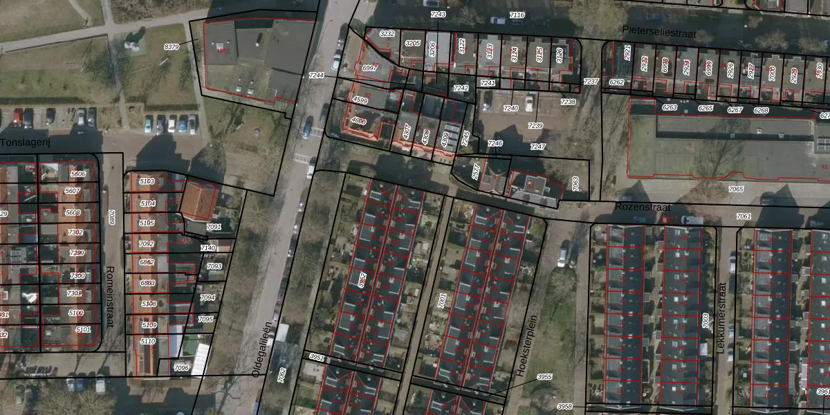 Het adres is gelegen op perceel 3952 in de sectie F en de kadastrale gemeente Leeuwarden. De kadastrale aanduiding is aldus LWD00-F-3952. Het perceel is kleiner dan gemiddeld in Leeuwarden. Het perceel is 1076 m² groot, terwijl het gemiddelde ligt op 1522,59 m². Het grootste perceel in de kadastrale gemeente is 1,54 km². Het kleinste perceel heeft een oppervlakte van 0 m². Er zijn 16 adressen aanwezig op het perceel. In de Basisregistratie Kadaster (BRK) werden de grenzen van het perceel geregistreerd op 15-01-1998.