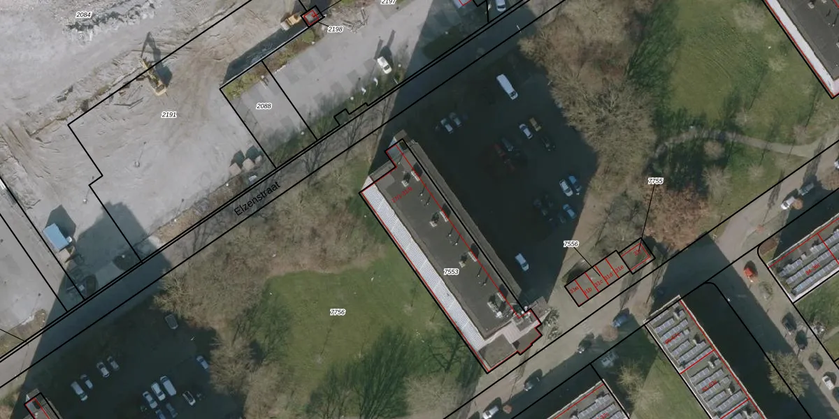 Het adres is gelegen op perceel 7553 in de sectie F en de kadastrale gemeente Leeuwarden. De kadastrale aanduiding is aldus LWD00-F-7553. De gemiddelde perceelgrootte in Leeuwarden is 1524,67 m². Dit perceel is kleiner: de perceeloppervlakte bedraagt 874 m². Het grootste perceel in de kadastrale gemeente is 1,54 km². Het kleinste perceel heeft een oppervlakte van 0 m². Er zijn 80 adressen aanwezig op het perceel. De huidige grenzen van het perceel zijn digitaal in de Basisregistratie Kadaster (BRK) geregistreerd op 14-11-2002.