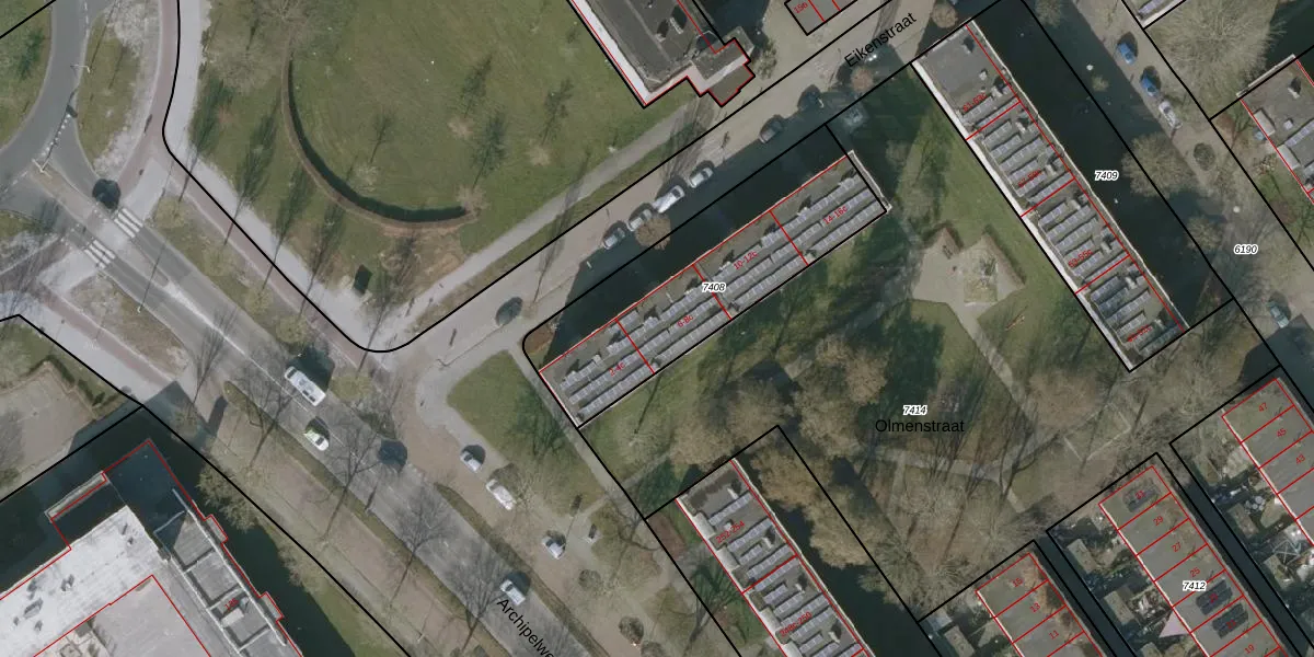 Het adres is gelegen op perceel 7408 in de sectie F en de kadastrale gemeente Leeuwarden. De kadastrale aanduiding is aldus LWD00-F-7408. Het perceel is kleiner dan gemiddeld in Leeuwarden. Het perceel is 930 m² groot, terwijl het gemiddelde ligt op 1524,67 m². Het kleinste perceel in de kadastrale gemeente is 0 m² groot. De grootste perceeloppervlakte is 1,54 km². Op het perceel liggen in totaal 24 adressen. De huidige grenzen van het perceel zijn digitaal in de Basisregistratie Kadaster (BRK) geregistreerd op 28-03-2006.