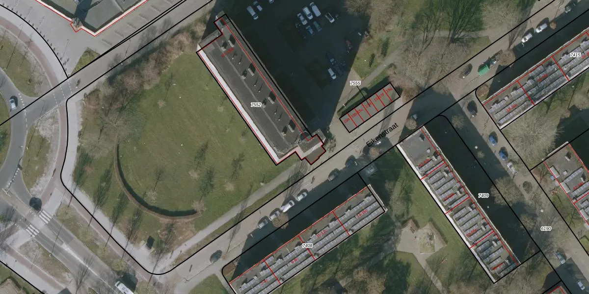 Eikenstraat 7-4 is gelegen op kadastraal perceel LWD00F7552. Deze kadastrale aanduiding is uniek en wordt gebruikt door het Kadaster om eigendomsrechten en andere zakelijke rechten vast te leggen. Het perceel maakt onderdeel uit van de kadastrale gemeente Leeuwarden.