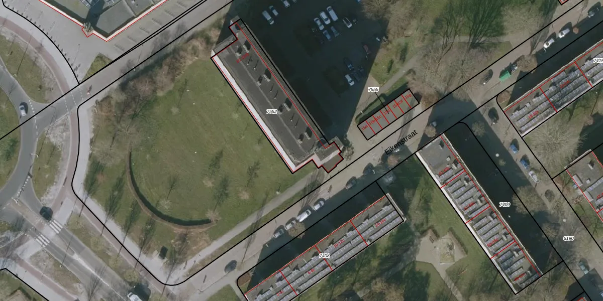 Eikenstraat 9-10 is gelegen op kadastraal perceel LWD00F7552. Deze kadastrale aanduiding is uniek en wordt gebruikt door het Kadaster om eigendomsrechten en andere zakelijke rechten vast te leggen. Het perceel maakt onderdeel uit van de kadastrale gemeente Leeuwarden.